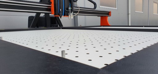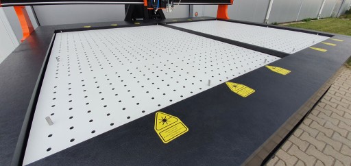 Czujniki laserowe dla bazowania dla bazowania materiału na Otwory bazujące w stole: Tak + 12 kołków bazujących.