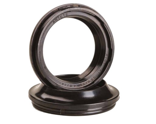 ARIETE najwyższej jakości komplet uszczelniaczy przedniego zawieszenia (teleskopów, lag). Materiał z jakiego są wykonane uszczelniacze to karboksylowany kauczuk butadienowo-nitrylowy, elastometr znany jako XNBR. Ten związek chemiczny oferuje unikalną odporność na ścieranie, na wysokie temperatury oraz stosowane kompleksowe smary z różnymi dodatkami. Zestaw z kompletem uszczelek firmy Ariete oraz olejem Motul fork oil.