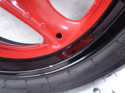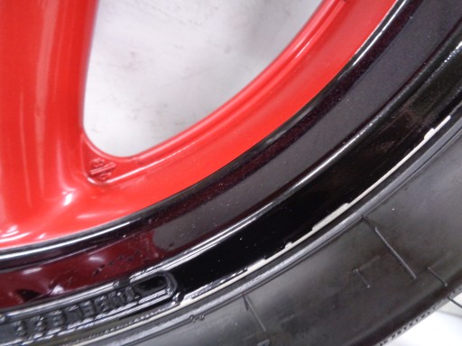 Koła 100% sprawne, proste, komplet, opony z 18 roku, malowane, czerwony lakier w bardzo dobrym stanie, czarny lakier na rantach ma kilka odprysków, sprzedaję dokładnie to, co widać na zdjęciach.