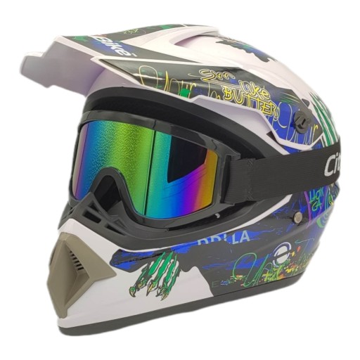 CROSSOWY KASK MOTOCYKLOWY + GOGLE