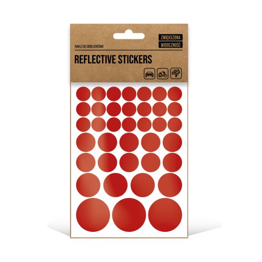 NAKLEJKI ODBLASKOWE OKRĄGŁE 38 SZT CZERWONE