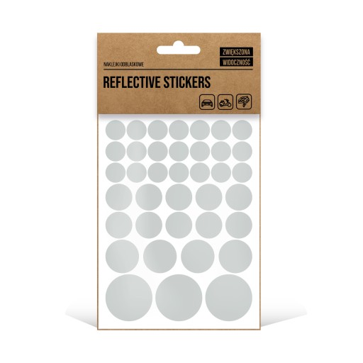 NAKLEJKI ODBLASKOWE OKRĄGŁE 38 SZT SREBRNE
