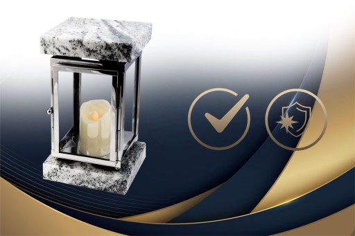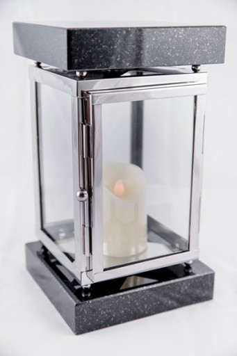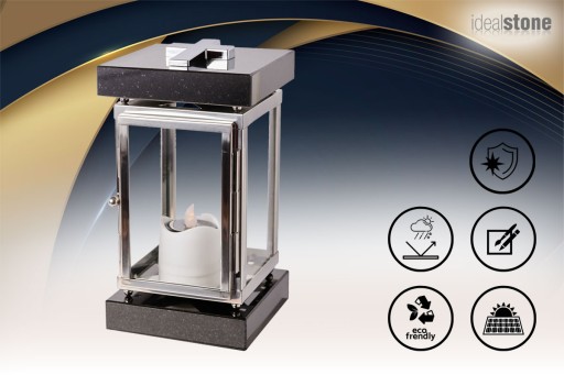 Ekskluzywny lampion nagrobny kwadratowy marki Idealstone, wykonany z naturalnych materiałów - kamień i stal nierdzewna. Trwały i elegancki.