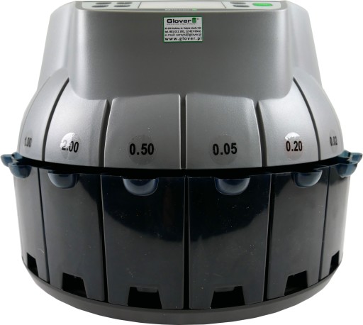 Sorter Glover CS-500 to nowa propozycja w ofercie urządzeń tej marki. Służy do sortowania i liczenia bilonu (8 nominałów, bez 1gr.). Za jego pomocą możemy usprawnić i przyspieszyć niewygodny proces obsługi monet. Urządzenie po skończonym procesie sortowania podaje nam łączną wartość przeliczonego bilonu oraz ilość monet dla poszczególnych nominałów.