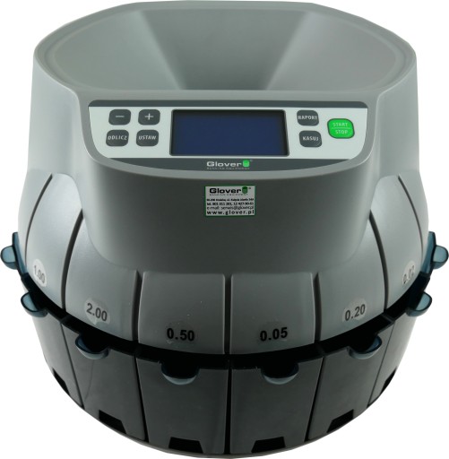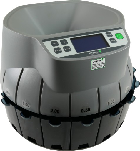 Sorter Glover CS-500 to nowa propozycja w ofercie urządzeń tej marki. Służy do sortowania i liczenia bilonu (8 nominałów, bez 1gr.). Za jego pomocą możemy usprawnić i przyspieszyć niewygodny proces obsługi monet. Urządzenie po skończonym procesie sortowania podaje nam łączną wartość przeliczonego bilonu oraz ilość monet dla poszczególnych nominałów.