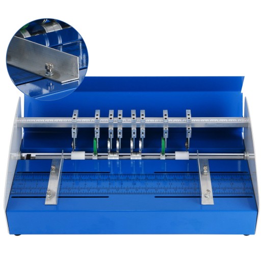 【PARAMETR PRODUKTU】-Maksymalna szerokość papieru: 18 "/460 mm; Szerokość perforacji / bigowania / cięcia: 0,039" / 1 mm; Głębokość zagnieceń: regulowana; Materiał: metal; Numer ścieżki bigowania: 2.