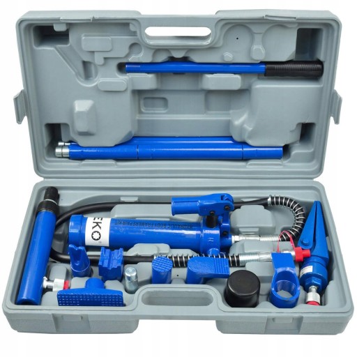 Zestaw został wyposażony w wydajną pompę hydrauliczną dzięki której wykonasz następujące prace: podnoszenie, ściąganie, zginanie, prostowanie oraz rozpieranie.
