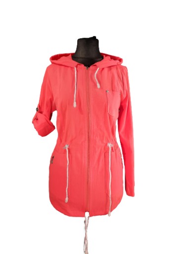Kurtka letnia damska z lekkiej przewiewnej bawełny, z kapturem. Rękaw długi lub możliwość podwinięcia do łokcia.