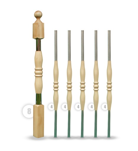 Балясина ДУБ ЯСЕНЬ + хромированные балюстрады, металлические балясины