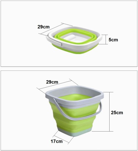 WIADRO KWADRATOWE SILIKONOWE SKŁADANE PRZENOŚNE UNIWERSALNE KEMPINGOWE 10L