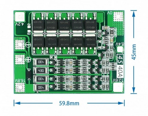Модуль BMS литий-ионный балансир 4S 16,8 В 40 А 80 А ток баланса 100 мА / 0036