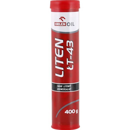 Informacje techniczne: Smary Liten ŁT-43 otrzymywane są przez zagęszczenie rafinowanego oleju mineralnego mydłem litowym i uszlachetniane są pakietem dodatków o działaniu przeciwutleniającym, przeciwrdzewnym i smarnym. Smar Liten ŁT-43 odporny jest na działanie wody. Smary plastyczne Liten ŁT-43 stosuje się do smarowania łożysk tocznych i ślizgowych.