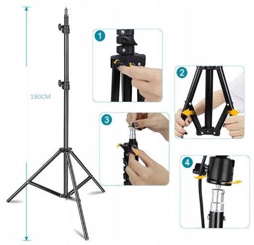 - Regulowany statyw jest łatwy w montażu i składa się do niewielkich rozmiarów