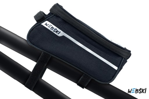 Wodoodporna sakwa rowerowa Webski mocowana na ramę roweru z poliwęglanową kieszonką na telefon przewodzącą dotyk