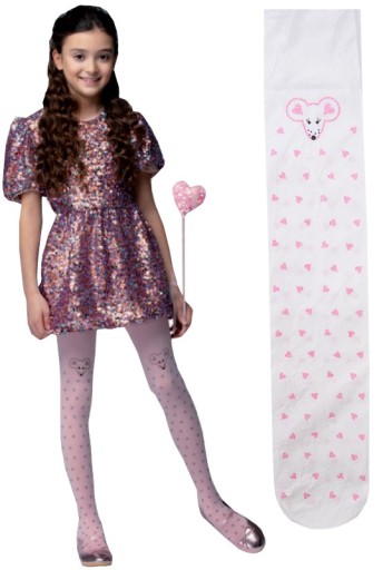 Kolor: BIAŁE RAJSTOPY W RÓŻOWE, BROKATOWE MYSZKI