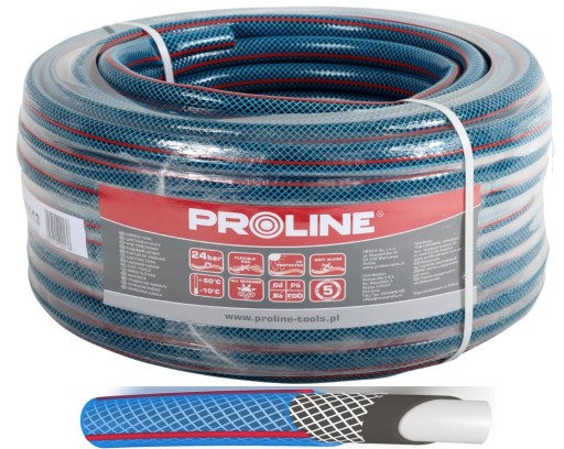 Węże ogrodowe marki Proline z serii BLUEBOS PLUS to produkty czterowarstwowe wykonane z elastycznego PCW na bazie suspensyjnego polichlorku winylu oraz innych komponentów, dodatkowo wzmocnione obwojem tekstylnym. Wyrób przeznaczony jest do tłoczenia wody o ciśnieniu roboczym 8 bar (w 20oC), ciśnienie rozrywające wynosi powyżej 24 bar (w 20oC). Zakres temperatur od -10oC do +60oC. Wyrób objęty ochroną na obszarze Unii Europejskiej. Węże PROLINE są produktami przyjaznymi dla środowiska, ponieważ w składzie chemicznym zastosowanych tworzyw sztucznych nie znajdziemy kadmu, baru, ołowiu i ftalanów. Dodatkowo wysoka jakość zastosowanych materiałów praktycznie eliminuje przepuszczanie światła co skutecznie ogranicza możliwość osadzania się glonów we wnętrzu węża. Produkt nadaje się też do kontaktu z wodą pitną. Zastosowane materiały są także odporne na promieniowanie UV.