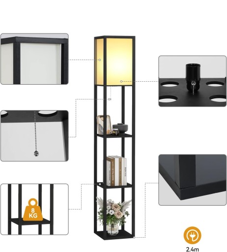 Lampa podłogowa ELECWISH z półkami do przechowywania eksponatów