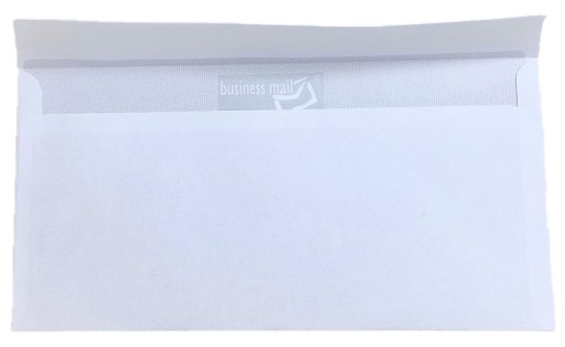 Papierowa koperta listowa w rozmiarze DL, typ zamkniecia: SK - samoklejaca (dwa paski kleju). Poddruk.