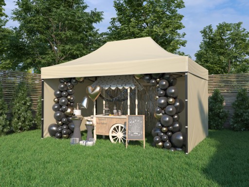 Dekoracyjna biała listwa brezentu nadaje pawilonowi składającemu się ponadczasową elegancję,podkreślając wizualnie wysoką jakość produktu