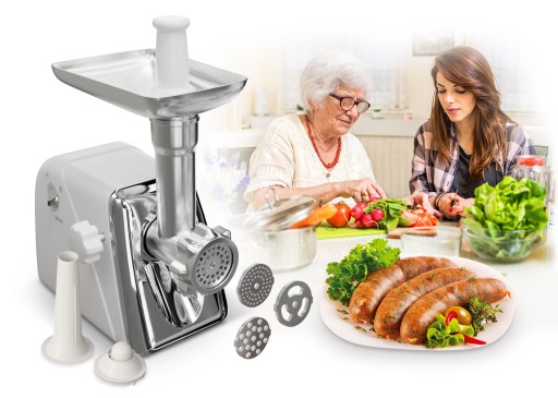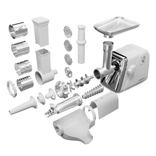 Urządzenie wyposażone jest w nasadkę masarską, nasadkę orientalną oraz mocny ślimak, który dokładnie zmieli pokarm.