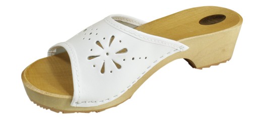 Białe drewniaki damskie otwarte ze skóry naturalnej