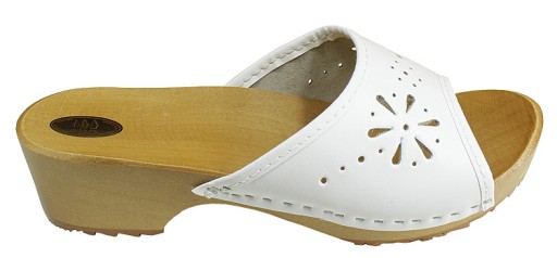 Białe drewniaki damskie otwarte ze skóry naturalnej