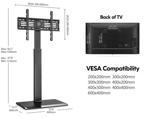 FITUEYES FT-S1602MB Stojak podłogowy telewizora z żelazną podstawą z regulacją wysokości obrotowej dla płaskich ekranów od 32 do 65 cali