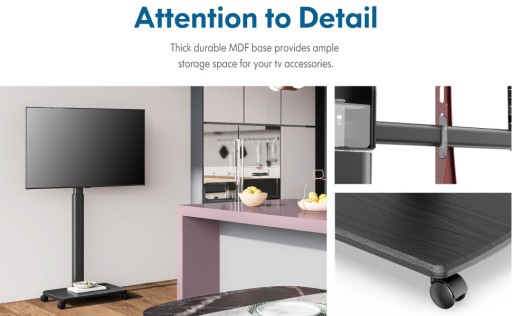 FITUEYES Mobilny wózek telewizyjny z drewnianą podstawą Stojak na ekran o przekątnej od 32 do 65 cali regulowanej Utrzymuje 40 kg Max VESA 600 * 400 mm