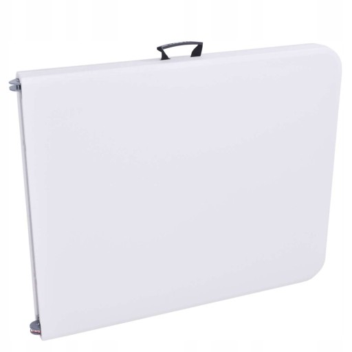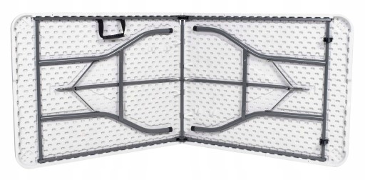 Składany stół kempingowy/cateringowy. Bardzo praktyczny i lekki. Konstrukcja wykonana ze stali malowanej proszkowo. Blat wykonany z mocnego tworzywa sztucznego HDPE. Stolik po złożeniu tworzy praktyczną walizkę, dzięki czemu zajmuje małą przestrzeń i jest łatwy do przeniesienia.