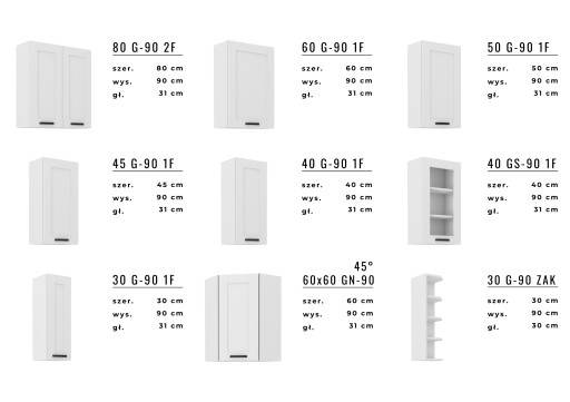 Korpus: płyta laminowana 16 mm, tył - HDF 2,5 mm - biały / obrzeże melamina