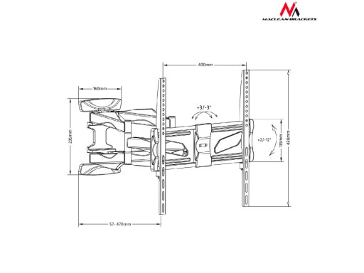 - Regulowana odległość od ściany: od 57 mm do 470 mm