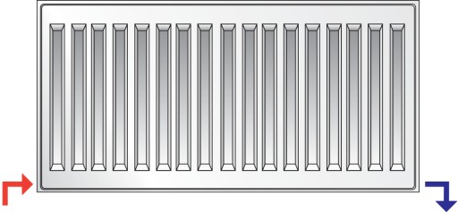 Grzejnik dwupłytowy z dwoma radiatorami, przyłącze boczne obustronne