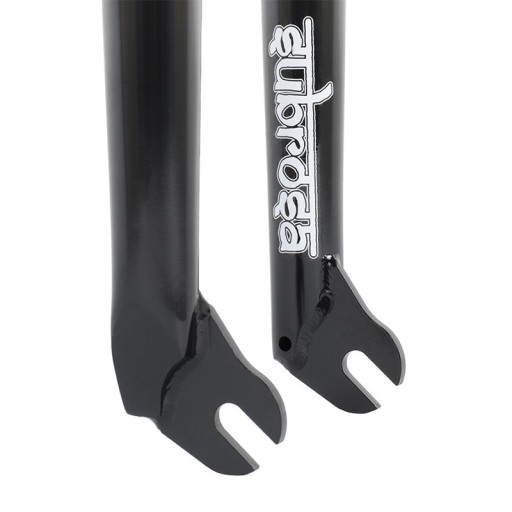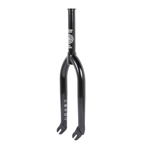 Powiększona korona o średnicy 38mm zwiększa powierzchnię spawu pomiędzy goleniami i rurą sterową znacząco zwiększa wytrzymałość. Powiększona korona umożliwia także montaż szerokich opon bez obawy, że zaczną obcierać o golenie przy niewielkim skrzywieniu koła. Odlewane haki niwelują ryzyko pęknięcia na spawie. Połączenie powyższych stanowi całkowicie nowe, niespotykane u konkurencji podejście do widelca - jednego z najbardziej obciążonych i jednocześnie odpowiedzialnych elementów naszego BMX'a.
