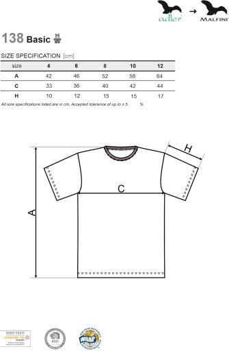 Rozmiary koszulek dziecięcych unisex chłopczyk/dziewczynka