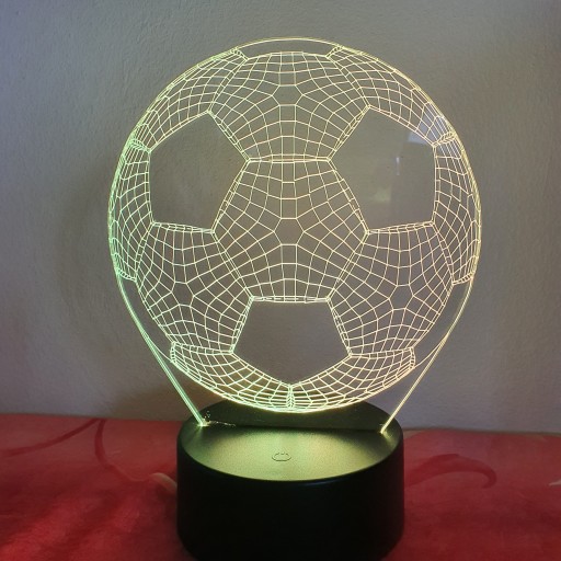 Lampka składa się z czarnej podstawy i wkładanej do niej części z bezpiecznego i lekkiego szkła akrylowego (wygrawerowana piłka)