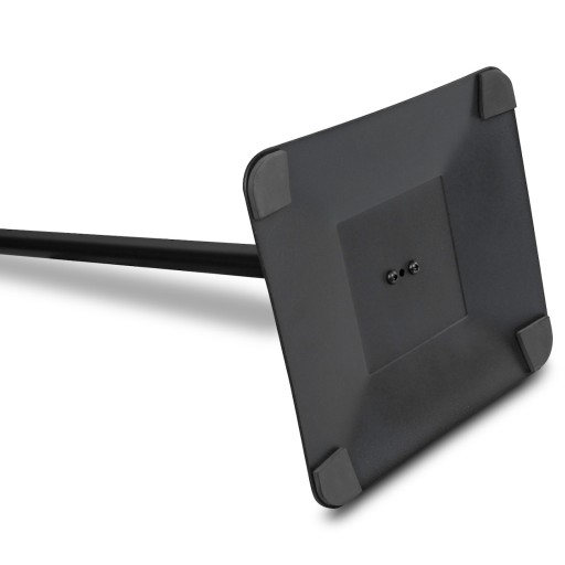 Bardzo elegancki stojak informacyjny w kolorze czarnym matowym, którego podstawa wykonana jest ze stali.