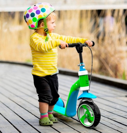 Jeździk idealnie sprawdzi się dla każdego malucha już od 18 miesiąca życia. Z kolei kiedy trochę podrośnie (od 24. miesiąca życia) będzie mógł zacząć swoją przygodę na hulajnodze.