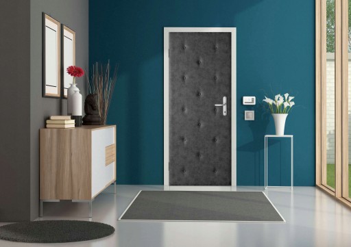 Tapicerka do samodzielnego montażu. W celu uzyskania efektu wgłębienia, guziki należy przybić do drzwi za pomocą młotka.