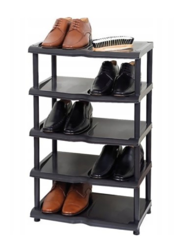 - Stojak posiada pięć pięter, każde z dedykowaną przestrzenią na dwie pary butów