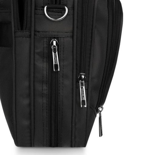 Wszystkie komory i kieszenie mają mocny zamek z eleganckimi logowanymi pullerami.