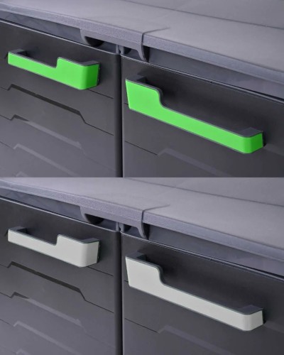 Do zestawu dołączone są opcjonalne uchwyty do otwierania drzwi, uchwyty są w dwóch kolorach - zielonym i szarym.