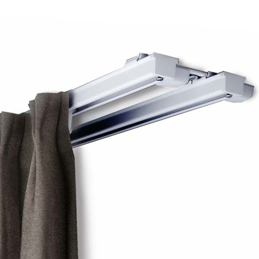 Profesjonalny i funkcjonalny system do zawieszania średnio-ciężkich tkanin. Montaż szyny na suficie jest szybki i prosty (wkręcane kołki mocujące w zestawie).Wytrzymałe wciskane suwaki - odporne na promieniowanie UV. Szyny można łączyć ze sobą w dłuższe odcinki za pomocą łączników ZS .
