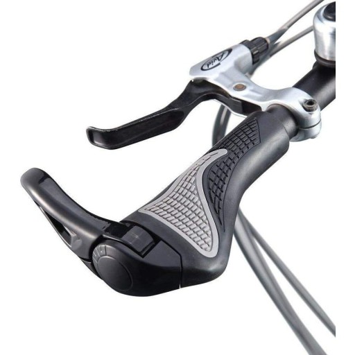 Anatomicznie dopasowane chwyty kierownicy wykonane z gumy dla uzyskania unikalnego uczucia miękkości, przy jednoczesnym utrzymaniu trwałości. Unikalny wzór powierzchni chwytów oraz ergonomiczny kształt zapewniają wygodną pozycję, absorpcję wstrząsów oraz pewność chwytu. Wyposażone w aluminiowe skręcane klamry oraz korki.