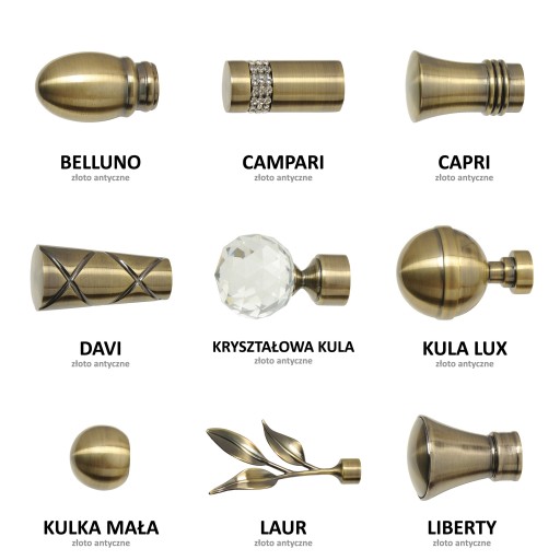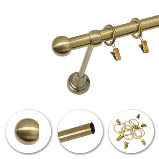 Na głównym zdjęciu znajduje się karnisz w kolorze złoto antyczne zakończenie kulka mała.