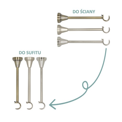 - karnisz o długości 250-480 cm - rurka w dwóch kawałkach, konieczny wspornik w miejscu łączenia