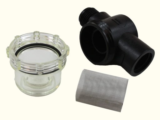 Sito o drobnych oczkach ze stali nierdzewnej zatrzymuje cząsteczki, które w przeciwnym razie mogłyby uszkodzić pompę lub system wodny.