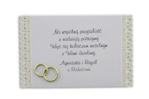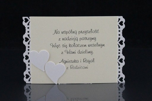 Istnieje możliwość umieszczenia własnych imion, dat np. ślubu na karnetach oraz modyfikacji i wstawiania własnych wierszyków.