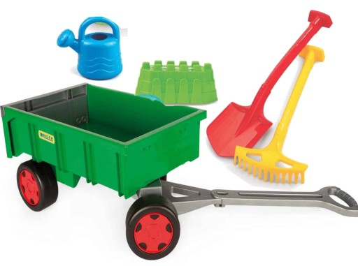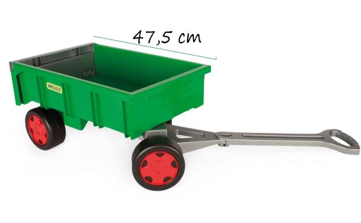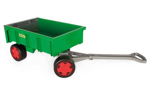 Wózek – Przyczepa Farmer z serii Gigant to sposób na wesołą zabawę dla najmłodszych dzieci. Zielony, farmerski wózek wykonany z najwyższej jakości tworzywa jest wytrzymały i odporny na każdą pogodę. Otwierana klapa przyczepy oraz nośność do 60 kg daje wiele możliwości atrakcyjnej zabawy. Dzieci uwielbiają przewozić w nim swoje zabawki, piasek, liście. Charakter zabawki stwarza dodatkowe możliwości do aktywności ruchowej, wspiera rozwój motoryczny dziecka oraz pobudza jego kreatywność.
