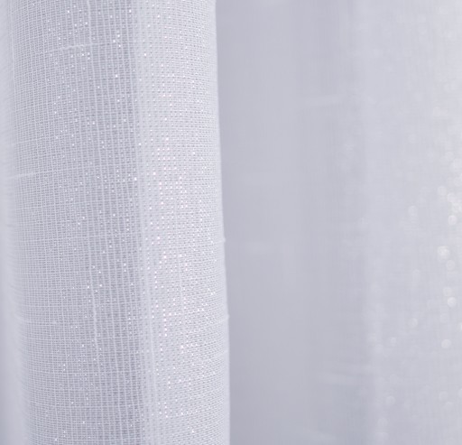Oferujemy państwu firanę z białego batystu, przeplecioną srebrną nicią ( firana z efektem lśniącego szronu).