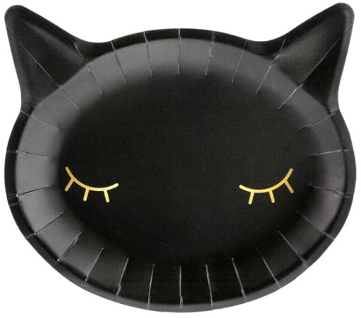 Talerzyki papierowe Kotek w kolorze czarnym ze złotym nadrukiem, wymiary ok. 22 x 20 cm.